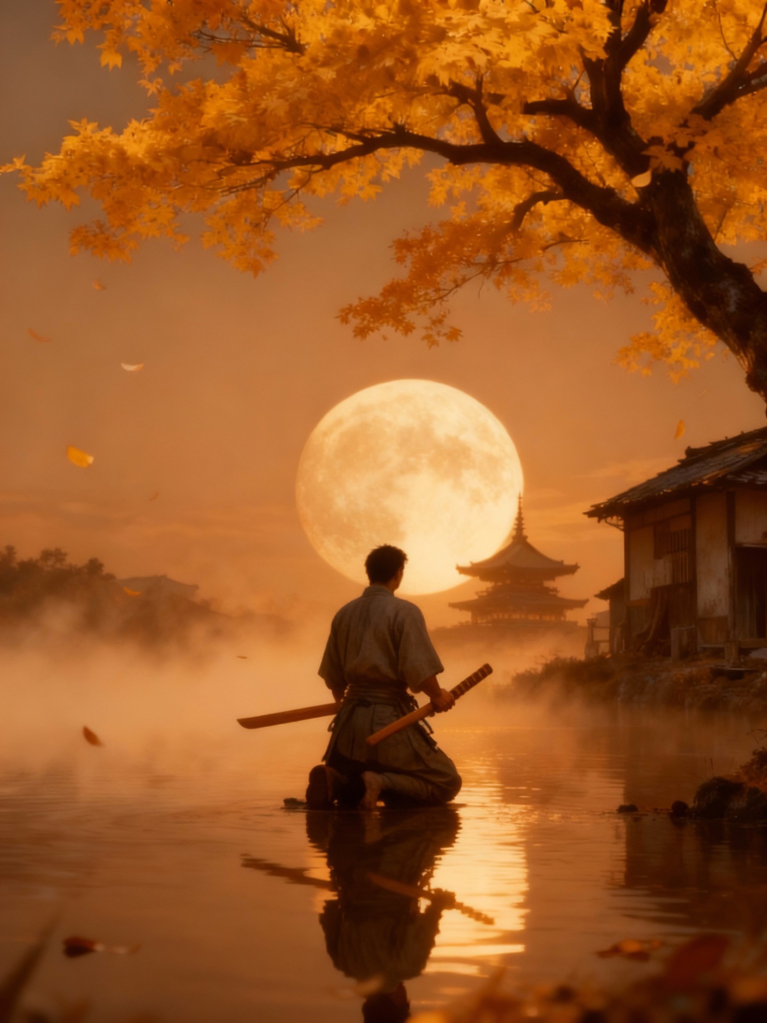 In the scene, the Samurai rises slowly, ready to seek his revenge and march toward the enemy’s castle for battle.