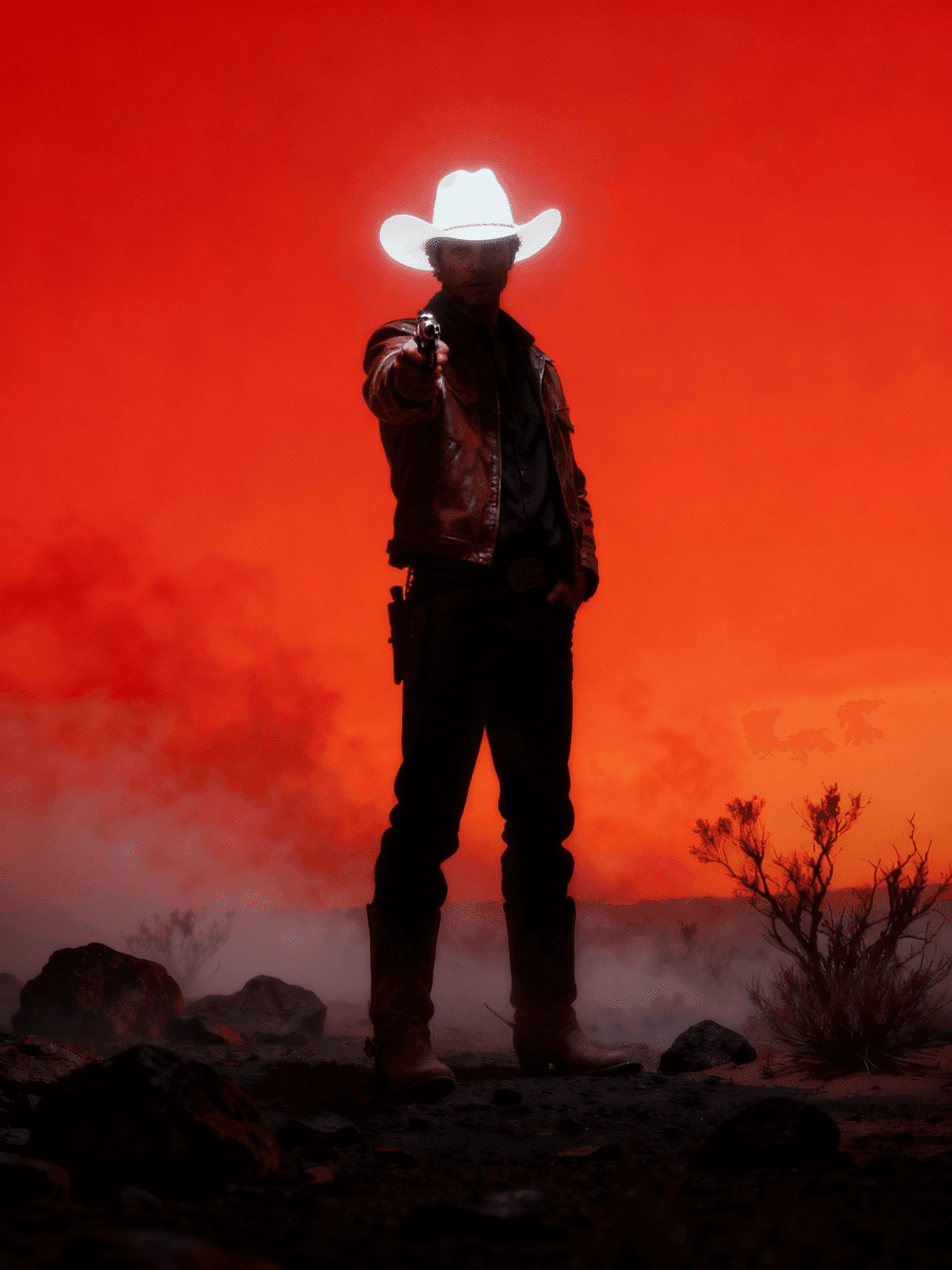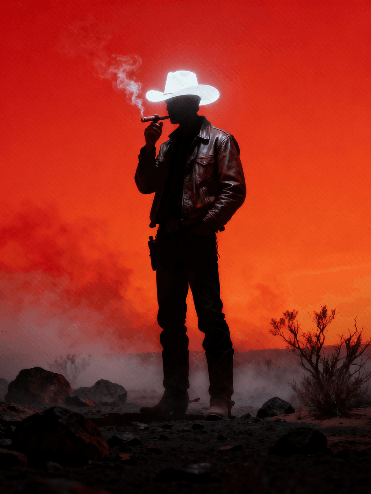 I generated these three scenes to portray the POV of the bounty whom the cowboy is about to eliminate. He’s standing there, calm and cold, smoking a cigar before delivering the kill in true Wild West style.